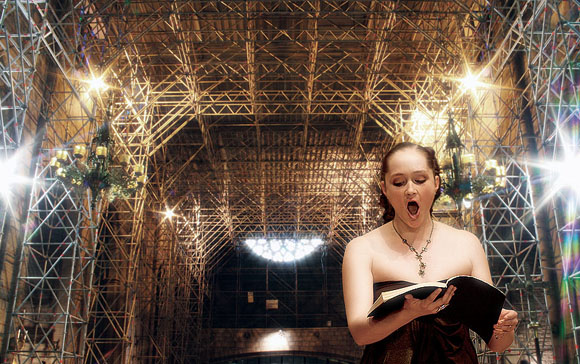 Però ja miraré de recuperar el temps perdut a mig mes i em posaré al dia. L’indret és l’església del Pi de Barcelona, on a part de les cerimònies religioses també és famosa per celebrar tota mena de concerts. Durant força temps (no sé si encara ho està) ha estat vestida amb unes bastides metàl·liques per fer el manteniment de l’estructura de l’edifici. La imatge es ven peculiar i com que sembla una garjola i donat el seu tarannà musical, li he posat a la TATYANA BOGDANCHIKOVA, una soprano siberiana que acostuma a cantar amb nosaltres, per fer un paral·lelisme simbòlic. Espero que us agradi.
